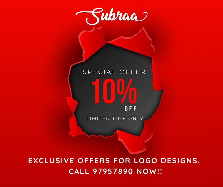 Hari Raya promotions are on and running for logo design services. Get a FLAT 10% off on logo design packages from Subraa. Get your unique identity designed at a discounted price now!! Call or WhatsApp at +65 97957890 to grab the offer. Email to info@subraa.com now with your requirements.